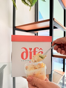 Creme de ninho cremoso com uva verde sem caroço e chocolate branco com sucrilios caramelizados.